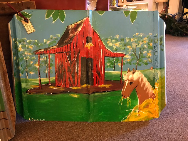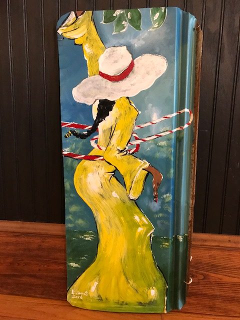 Celebrated as a renowned folk artist, Leonard began painting at age twelve when the high school principal gave him a painting kit, encouraging his creativity. He chose to paint with house paint on repurposed tin. His paintings of people and scenes depict the fun side of everyday living hoping to make people smile in remembrance of the joy in life.